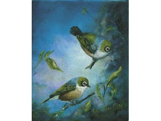 The Waxeye or Tauhou (which means Stranger in Maori) is a small olive green forest bird with white rings around its eyes. They can often be seen flying in large flocks.