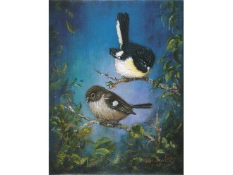 The male Tomtit is black with a yellow-cream breast while the female is brown with an off white breast. They pair up and stay in the same area all their lives.